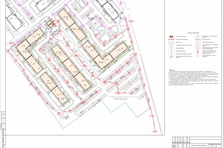 Проект наружного освещения раздел (ЭН) жилого комплекса. Принципиальная схема размещения опор наружного освещения по территории жилого комплекса.