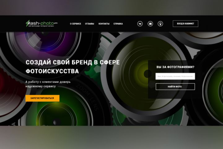 Landing Page для сервиса Flash-Photo, который предоставляет возможность фотографам создавать свой профиль в виде личного сайта, портфолио и реализовывать продажу снимков и фотосессий. Дизайн страницы подчеркивает функциональность и удобство сервиса для клиентов, а так же эффектно презентует приемущества работы с сервисом.