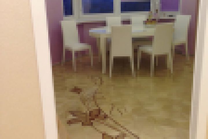 Дизайн интерьера двухкомнатной квартиры. На полу художественная врезка в паркет.