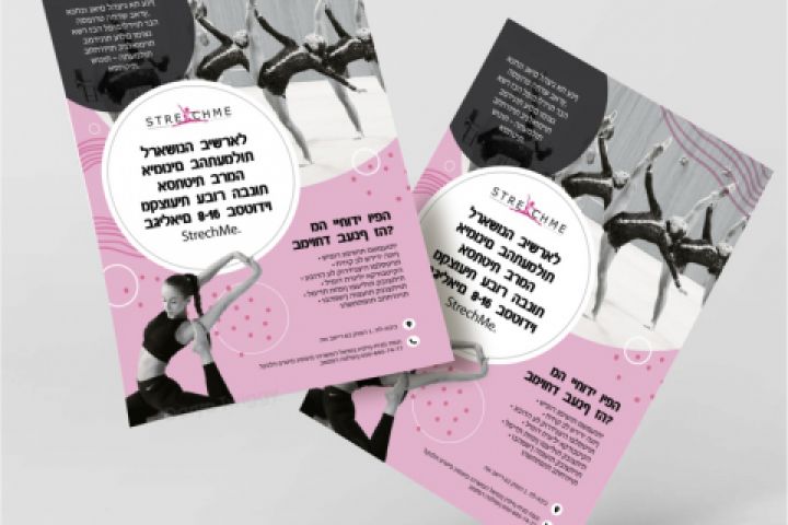 Флаер для студии растяжки в Израиле. Язык - иврит.