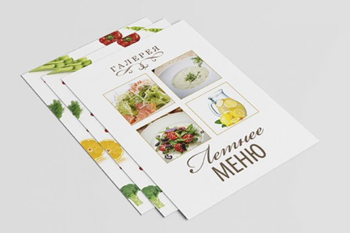 Летнее меню "под ключ" - от идеи до разработки для ресторана "Галерея" г. Москва Полноцветная печать 4+4