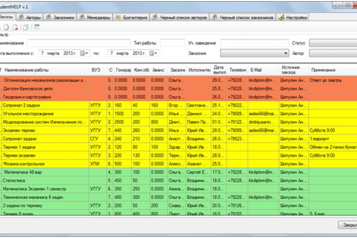 Программный модуль предназначен для автоматизации учета заказов студии дипломных работ.