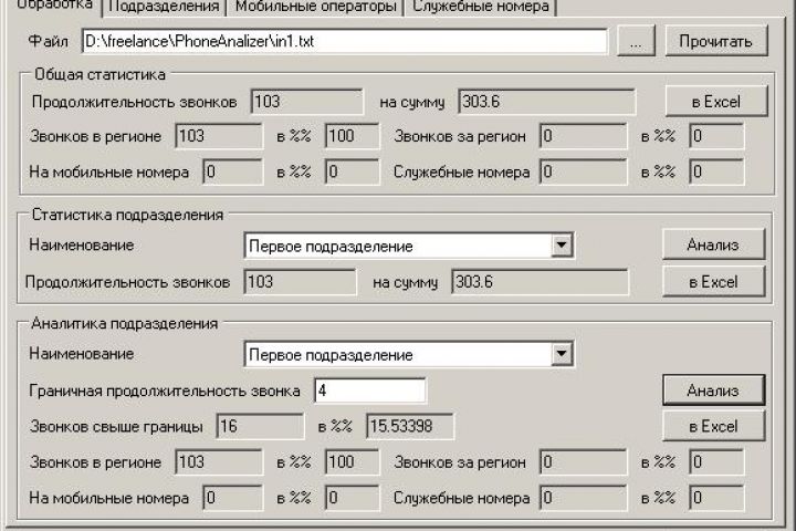 Программа для анализа отчета корпоративной АТС