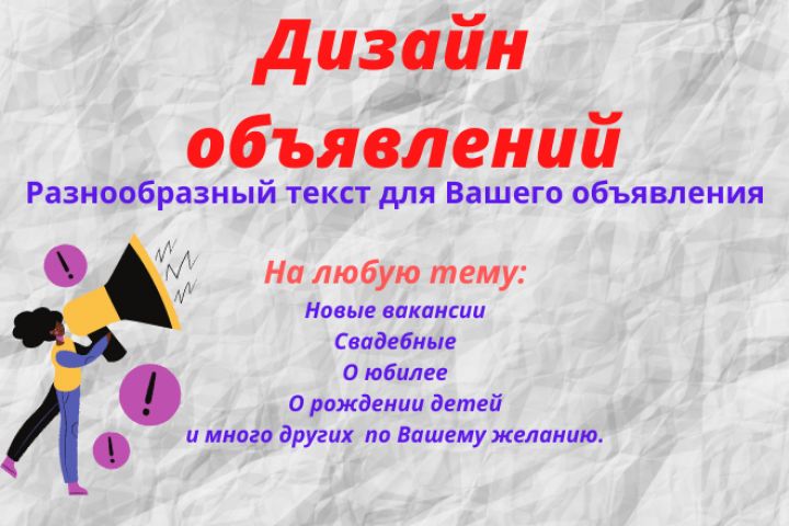 Любые объявления Смотрите ссылку на Кворк.Заказывайте.