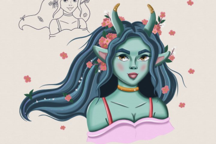 Иллюстрация эльфа со скетчем