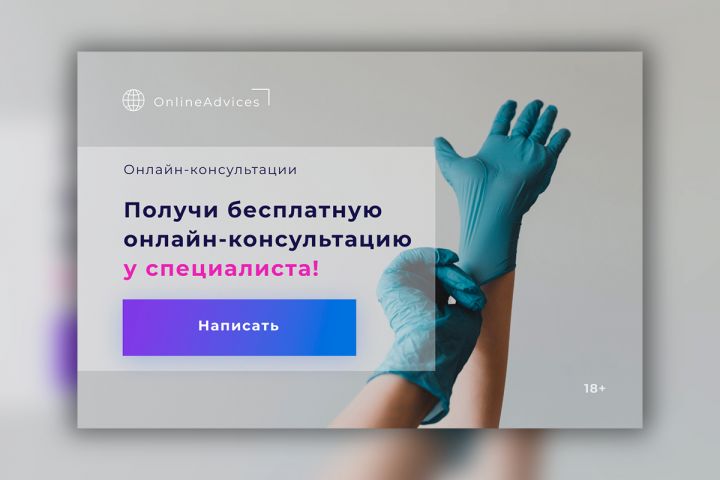 Баннер для сайта онлайн-медицины. Вариант подходит для онлайн-баннеров, как размещение рекламы на других сайтах. Сделано с помощью Figma