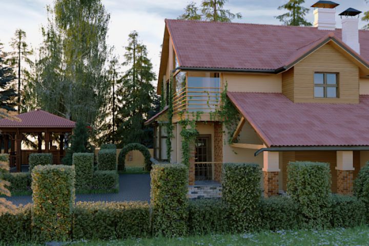 Проект загородного дома 260 кв.м и ландшафтный дизайн (Мытищи)