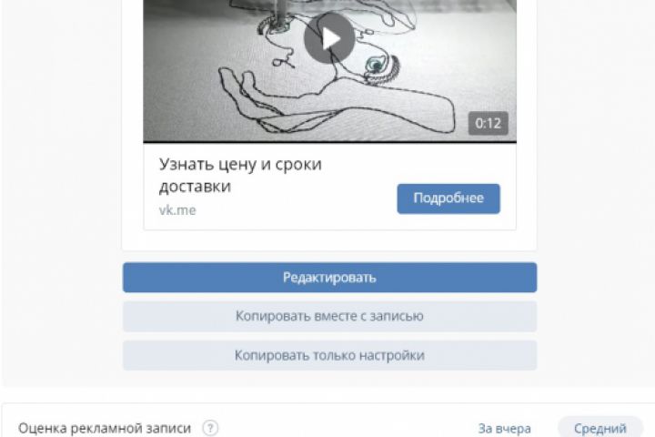 Сам рекламный кабинет ВКонтакте оценил один рекламный креатив на 7.7 / 10 балов.