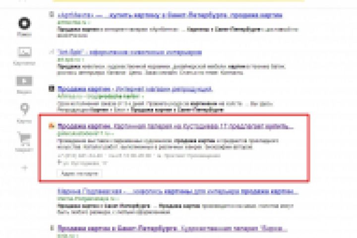 Запрос "Продажа картин" - 7 место. Результат после 10 дней работы