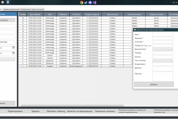 Требуется простая и функциональная программа без доп оплат и работой без интернета для сельской вет лечебницы.