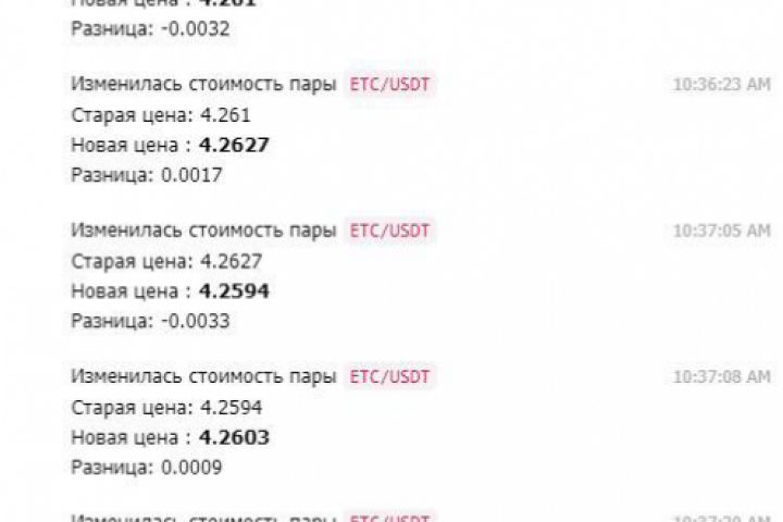 Бот, который с 2 сайтов по бирже криптовалют OKEX и Huobi дает информацию об изменению цены на 3 парах