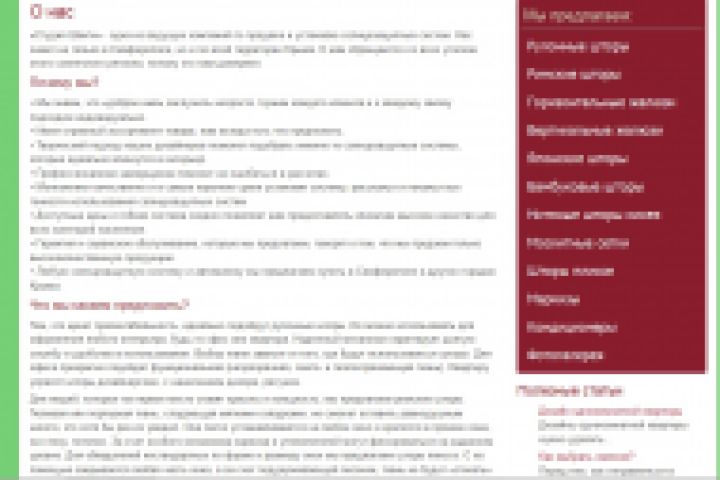 (Текст на главную писала не я, но некоторые заказчики, которым я показывала этот пример своей работы, сказали, что он лучше того, что стоит на главной. Тут уже, как говорится, дело вкуса. :)