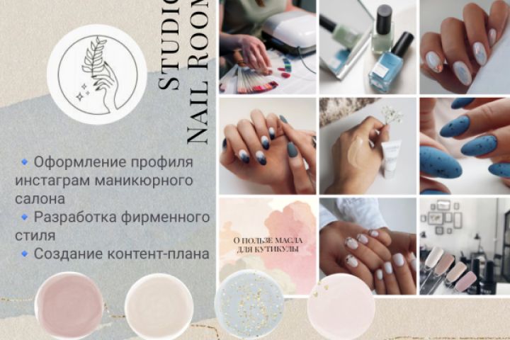 Оформление профиля инстаграм маникюрного салона. Разработка фирменного стиля. Создание контент-плана.