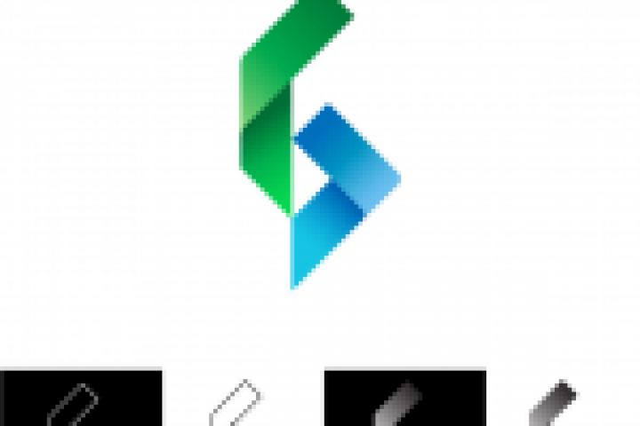 Логотип исполнен в ленточном стиле, образующий букву "Б" из двух компонентов.