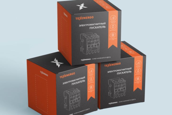 Темный вариант упаковки продукции. Оранжевый - фирменный цвет.