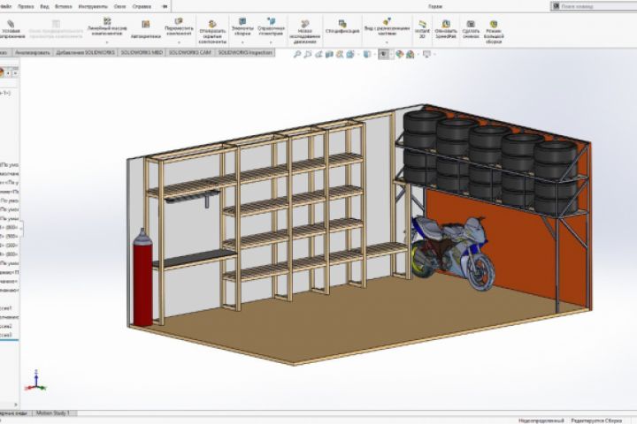 Делал для себя, макет гаража с полной деталировкой, составлением закупочной ведомости и производственных чертежей.