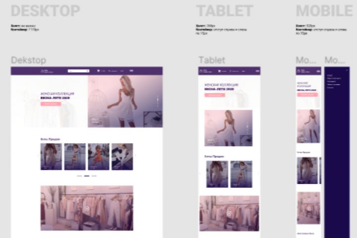 Дизайн главной страницы магазина женской одежды - Разработка прототипа - Разработка дизайна Сроки: 3 рабочих дня
