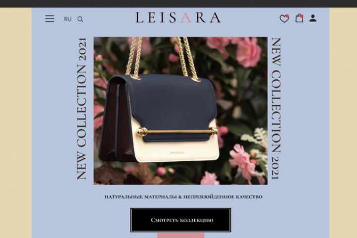 Дизайн сайта для интернет магазина сумок бренда LEISARA Главная страница, Каталог, Карточка товара