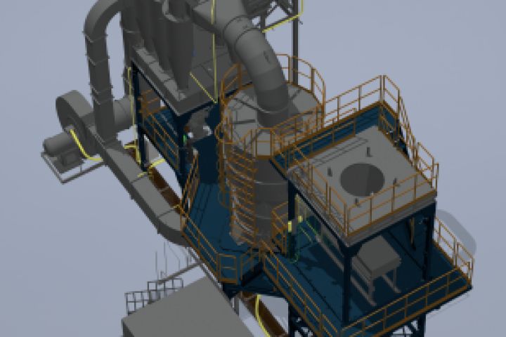 В данном проекте разрабатывалось оборудование для помола и классификации оксида магния. Разрабатывался полный комплект чертежей на металлоконструкции, 3D модели силовых и информационных кабелей с лотками и креплением.