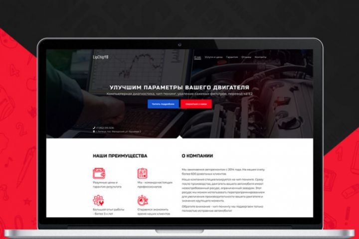 Landing page для компании по авторемонту, компьютерной диагностике и чип-тюнингу. Оптимизация сайта под смартфоны.