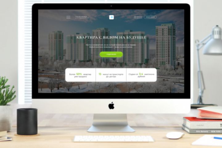 Сайт предназначен для продажи квартир в новом ж-к "Аквамарин". Дизайн: современный с ярким акцентом на продажу.