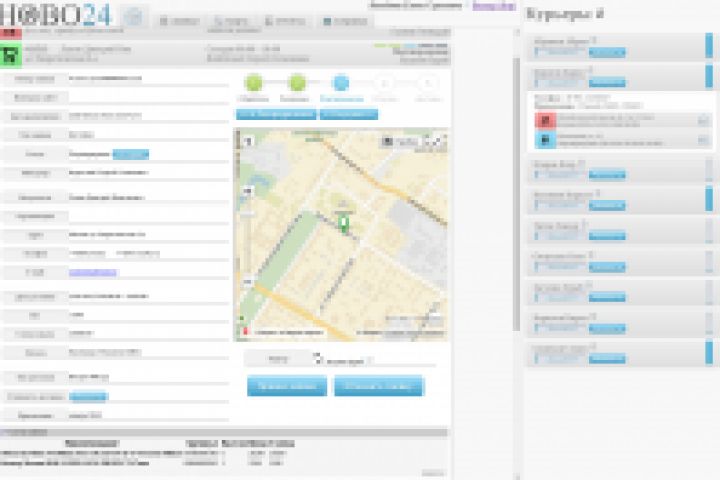 Система позволяет в режиме реального времени отслеживать работу курьеров, их местоположения, список заявок в порядке маршрута.
