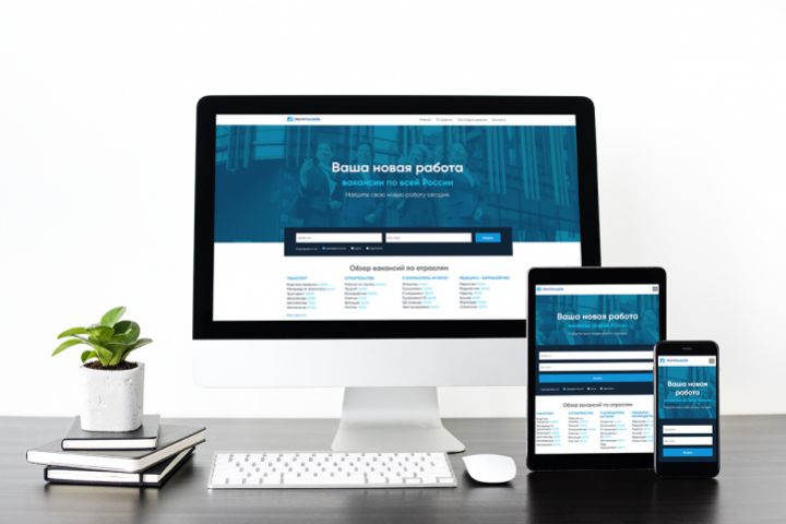 Сервис по поиску работы WorkHouse24. Дизайн, 100% адаптивная вёрстка, бэкенд - CMS MyEngine + добавлен модуль с API CareerJet.