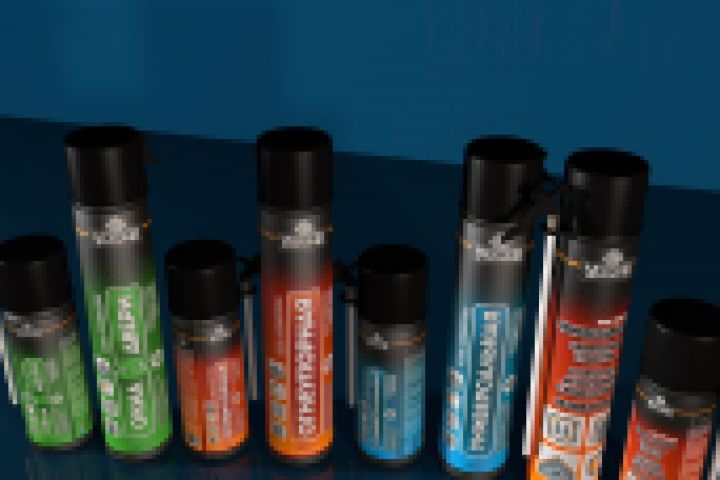 Линейка товаров " Строительной пены" . Был разработан логотип , этикетки и визуализация продукции в 3D.