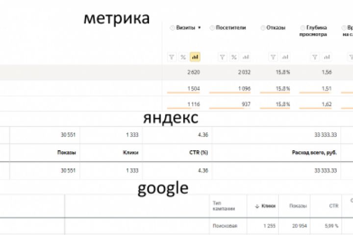 На скриншотах показана статистика за 6 месяцев из рекламных кабинетов Яндекс и Google. Кроме того, на отдельном скриншоте приведена статистика по конверсиям из Яндекс.Метрики.