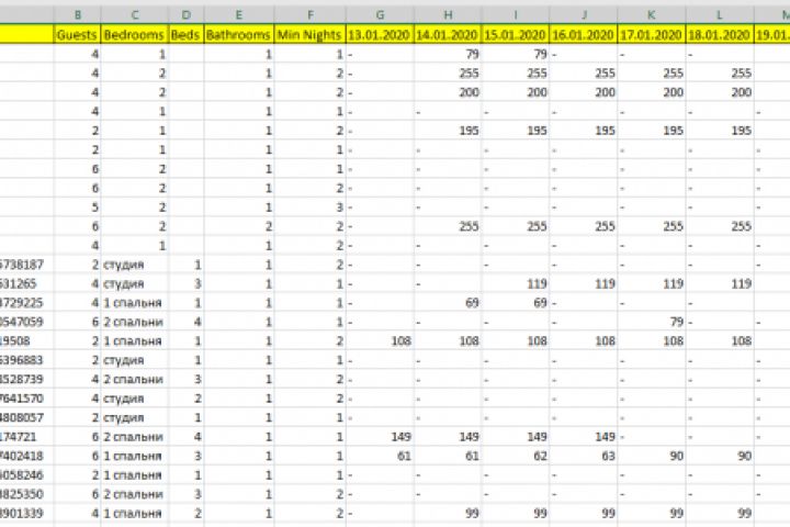 Таблица цен и свободных дат для Airbnb и VRBO