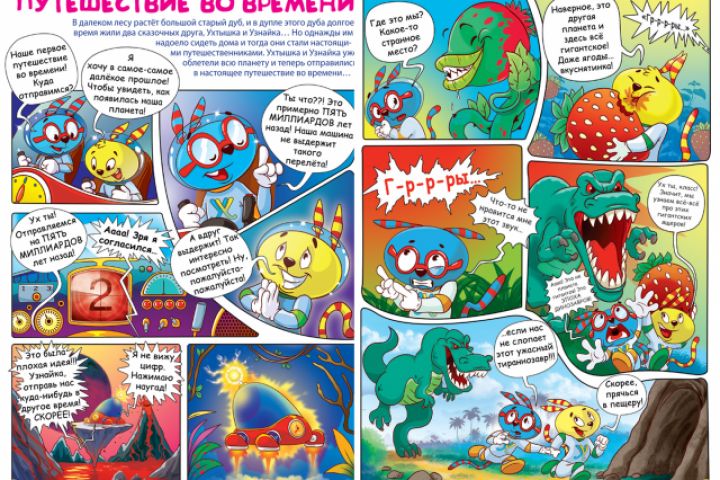 За период существования журнала мной было написано более 30 детских комиксов (каждый комикс состоит из трёх историй, общий объем 7 страниц).