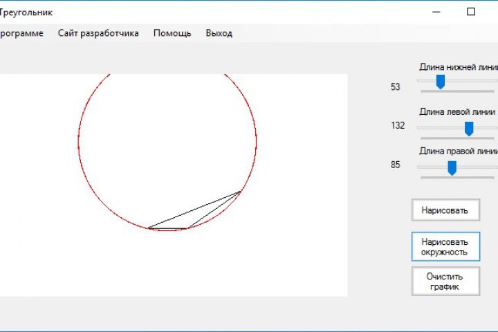 По заданным длинам треугольника нарисовать его. Нарисовать описывающую данный треугольник окружность.