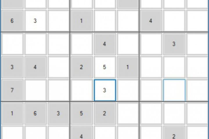 Приложение обеспечивает распределение цифр в игре Судоку. После распределения цифр пользователь может вводить цифры в свободные ячейки. Приложение проверяет корректность ввода значения и отменяет ввод, если цифра недопустима.