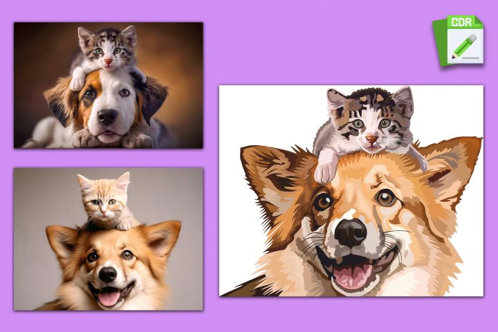Отрисовка в векторе по фото, комбинация двух иллюстраций