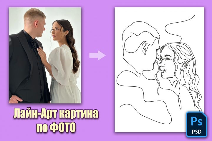 Лайн-арт портрет по фото в векторе, линейный рисунок в векторе
