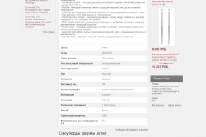 Наполнение интернет-магазина skidrom.ru. Тематика - зимний спорт (сноуборды, лижи). Движок сайта - самописный.