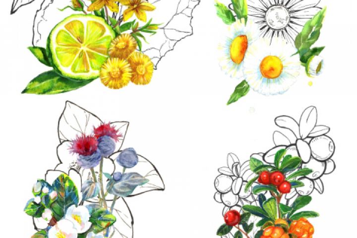 Иллюстрации на этикетку натуральной коcметики SIBERINA