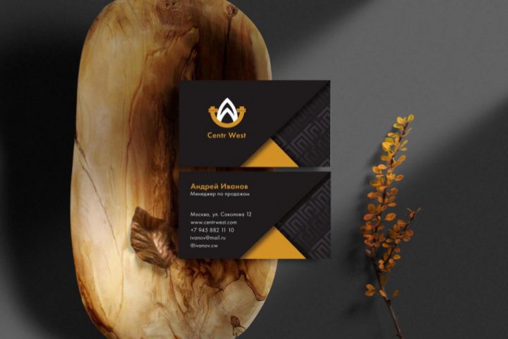 Визитка в черно-горчичных тонах, с эффектом объема и фактуры