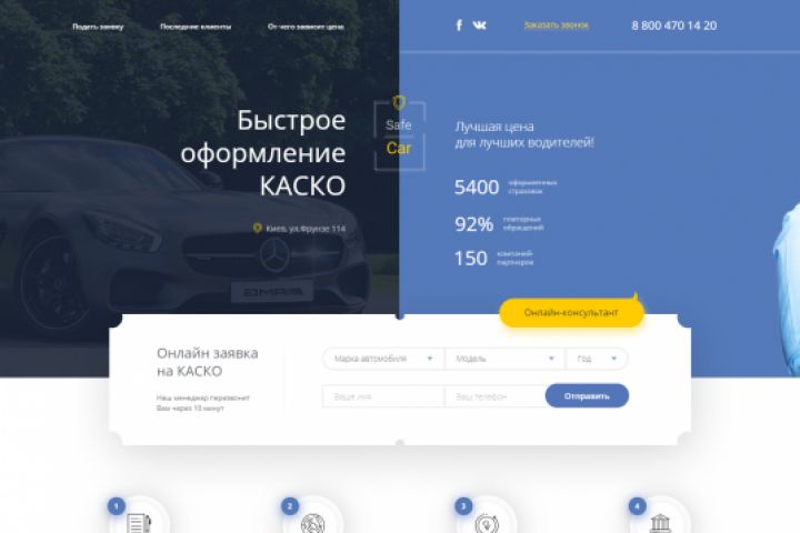 Пример лендинга на Тильде - быстрое страхование КАСКО.