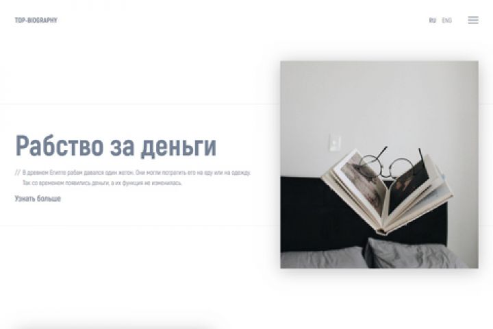 На сайте 'Top-biography' частный писатель продает свою книгу. Книга о том как не стать жертвой денег и системы.