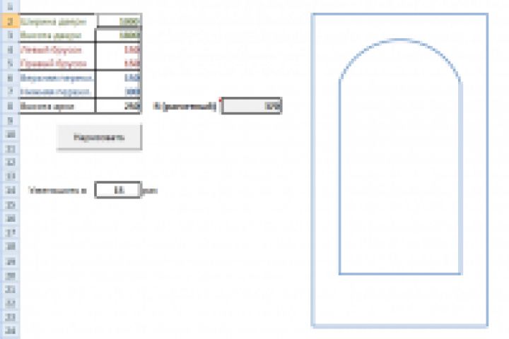 Пример рисования в Excel дверей с аркой по заданным размерам. См. xldraw.rar ниже 50$ - 1 день