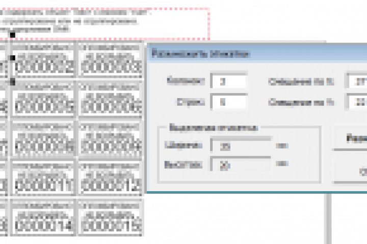 В CorelDraw создается этикетка, выделяется с Shift, и макрос размножает ее по заданным параметрам, увеличивая номер каждой созданной этикетки.