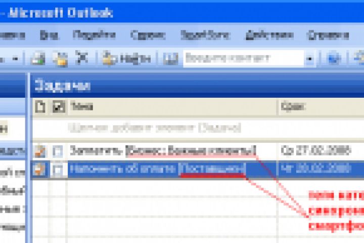 В Outlook записи находятся в Категориях, но эта информация при синхронизации с телефоном теряется.