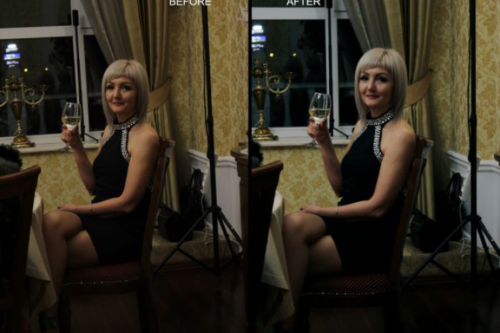 У модели убран дефекты кожи, затемнения кожи под глазами, сделан реалистичным цвет кожи, на фото выровнен горизонт.