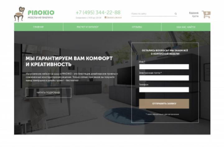 Лендинг по проектированию сбору и установке дизайнерской мебели.