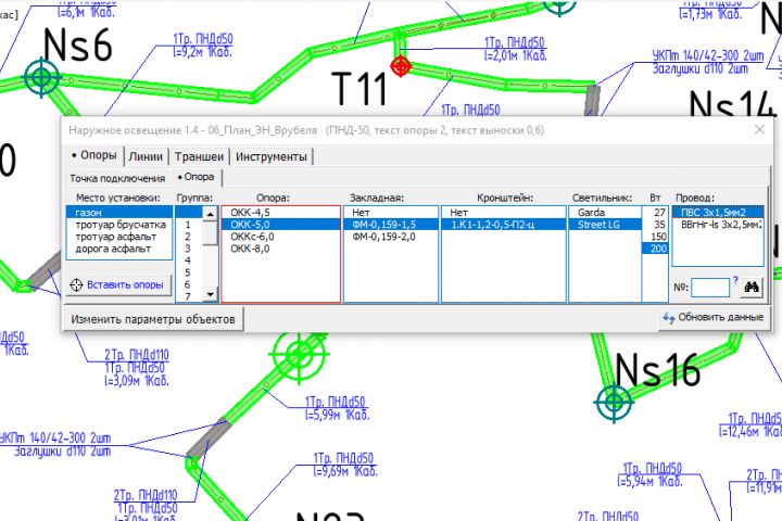 Система предназначена для автоматического создания калькуляции материалов и оборудования при проектировании наружного освещения.