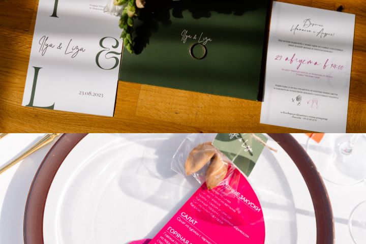 Разработка свадебной печатной продукции: конверты, пригласительные, номеры столов, план рассадки, меню, бомбоньерки, книга пожеланий, карточки гостей. кроссворд молодоженов.