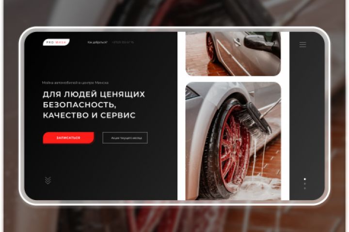 Одностраничный сайт для мойки автомобилей в центре Минска. Дизайн разработан в Figma .