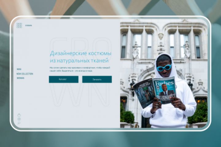 Одностраничный сайт для дизайнерской одежды CROWN. Дизайн разработан в Figma + адаптация к мобильной версии.