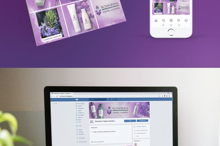 Создание логотипа, упаковки и оформление социальных сетей для бренда органической косметики "Rosmarina".
